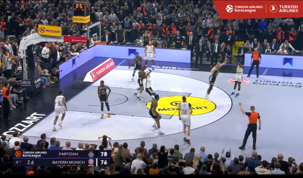 Το τρίποντο-μαχαιριά του Σιλβέν Φρανσίσκο, στα 1.1 δευτερόλεπτα, χάρη στο οποίο η Μπάγερν Μονάχου έφυγε νικήτρια, από την έδρα της Παρτίζαν, βρίσκεται στην κορυφή του Top με τις δέκα κορυφαίες φάσεις της 26ης αγωνιστικής της Euroleague.