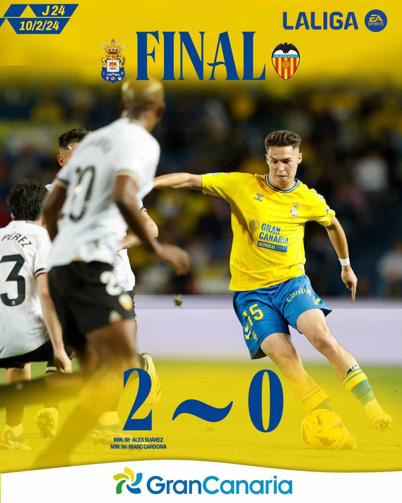 Σε ένα πολύ ισορροπημένο παιχνίδι Λας Πάλμας και Βαλένθια τέθηκαν αντιμέτωπες στην έδρας της πρώτης. Οι δύο ομάδες εξ’ αρχής έδειξαν διάθεση να προσέξουν περισσότερο τα μετόπισθεν. Άλλωστε η Λας Πάλμας είναι μία από τις καλύτερες αμυντικά ομάδες στο πρωτάθλημα. Με δύο χτυπήματα στο τέλος ωστόσο τα «καναρίνια» κέρδισαν με 2-0 την Βαλένθια. Πλέον, οι δύο ομάδες συγκατοικούν στην 8η θέση της βαθμολογίας. Αυτή ήταν η 7η ήττα εκτός έδρας για την Βαλένθια.