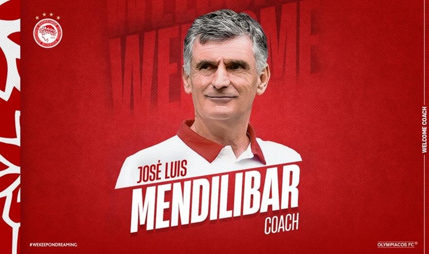 "Η ΠΑΕ Ολυμπιακός ανακοινώνει την έναρξη της συνεργασίας της με τον προπονητή κ. Χοσέ Λουίς Μεντιλίμπαρ Ετσεμπαρία. Γεννημένος στις 14 Μαρτίου 1961, στην πόλη Zaldibar, ο Βάσκος τεχνικός αναλαμβάνει τον Θρύλο προερχόμενος από τη Σεβίλλη, με την οποία τον περασμένο Μάιο κατέκτησε το Europa League.