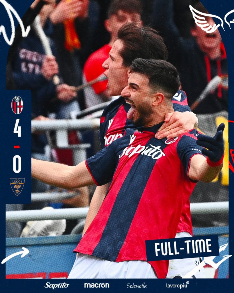 Η Μπολόνια επικράτησε της Λέτσε με 3-0, έπιασε τετράδα και φουλάρει για το σεντόνι.