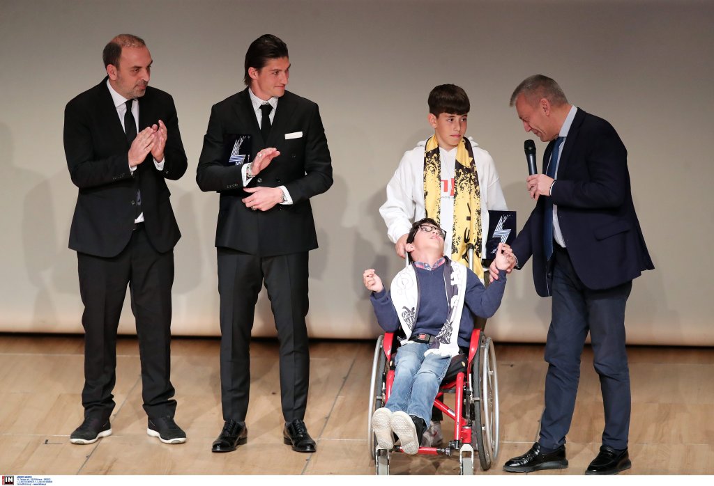 Το βραβείο παρέδωσε στον μικρό Γιαννάκη και στον εκ των αρχηγών της ΑΕΚ, Στίβεν Τσούμπερ, ο Αν. υπουργός Αθλητισμού, Γ. Βρούτσης.
