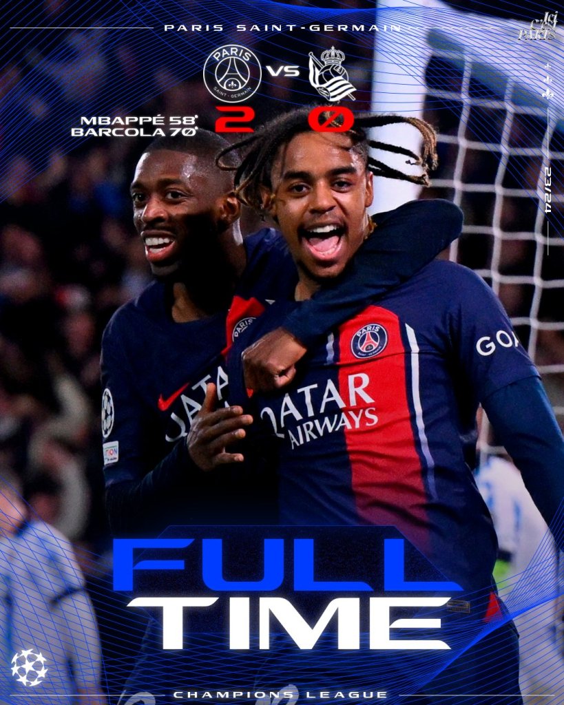 Η Σοσιεδάδ στάθηκε πολύ καλά μέσα στο «Παρκ ντε Πρενς» για λίγο λιγότερο από μια ώρα αγώνα αλλά η Παρί πάτησε γκάζι στη συνέχεια, κέρδισε με 2-0 κι έκανε αποφασιστικό βήμα για την πρόκριση.