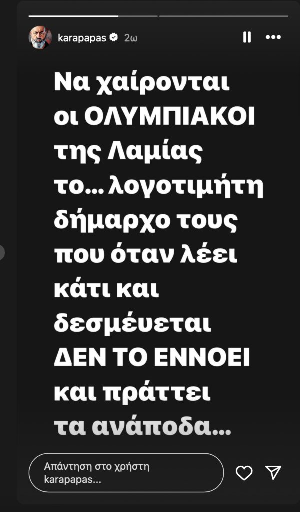 Από τον Ολυμπιακό πάντως, μέσω του αντιπροέδρου Κώστα Καραπαπά, επιτίθενται σε όσους ψήφισαν να απορριφθεί το αίτημα της αναβολής. Η αρχή έγινε με την επίθεση στον Παναθηναϊκό και ακολούθησε ένα ακόμα ποστάρισμα κατά της Λαμίας και προσωπικά του Πανουργιά Παπαϊωάννου, Δημάρχου της πόλης και προέδρου της ομάδας.