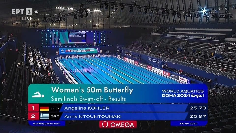 Το μπαράζ των 50μ πεταλούδας δεν είχε την κατάληξη που θέλαμε όλοι καθώς η Άννα Ντουντουνάκη έχασε τη μονομαχία με την Αντζελίνα Κόλερ και έμεινε στην 9η θέση και εκτός τελικού παγκοσμίου πρωταθλήματος της Ντόχα.
