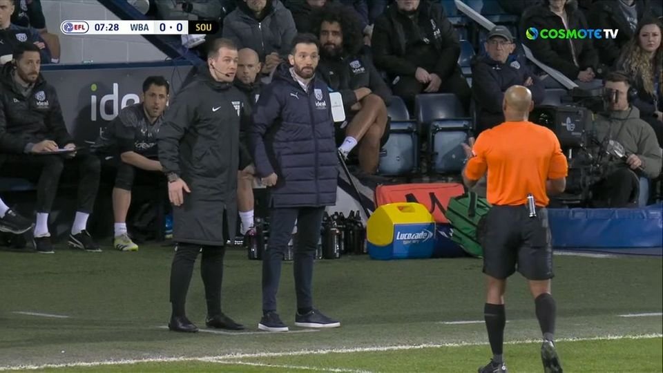Στην αναμέτρηση Γουέστ Μπρομ-Σαουθάμπτον, για τη Τσάμπιονσιπ, οι γηπεδούχοι χρειάστηκε να αγωνιστούν χωρίς τον προπονητή τους, από το έκτο λεπτό.