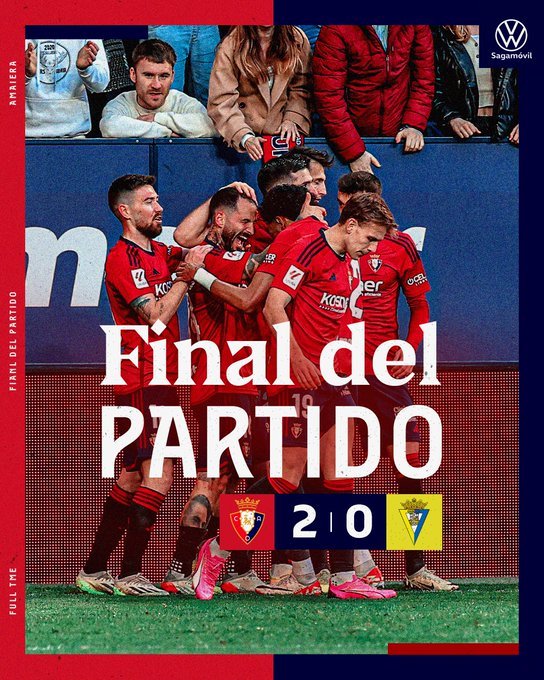 Στο 71’ το μακρινό σουτ που επιχείρησε ο Μονκαγιόλα δεν βρήκε στόχο και στο 86’ ο Ιμπάνιεθ έχασε μεγάλη ευκαιρία για να διπλασιάσει τα τέρματα της Οσασούνα. Στο 90+1’ οι γηπεδούχοι έφυγαν στην κόντρα, με τον Αρέσο να βλέπει την κίνηση του Μπούντιμιρ και να του περνάει την μπάλα, με τον Κροάτη να νικάει με «ψύχραιμο» πλασέ τον πορτιέρε της Κάδιθ για το τελικό 2-0.