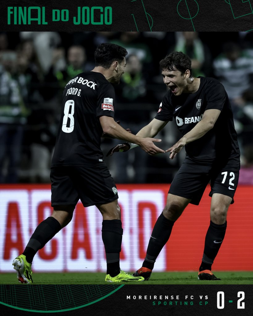Δεν σταματά πουθενά το τρένο της Σπόρτινγκ και οδεύει φουλ για τον τίτλο. Η ομάδα του Αμορίμ πέρασε με 2-0 από την έδρα της Μορεϊρένσε, έπιασε ξανά την Μπενφίκα στην κορυφή κι έχει κι ένα ματς λιγότερο.