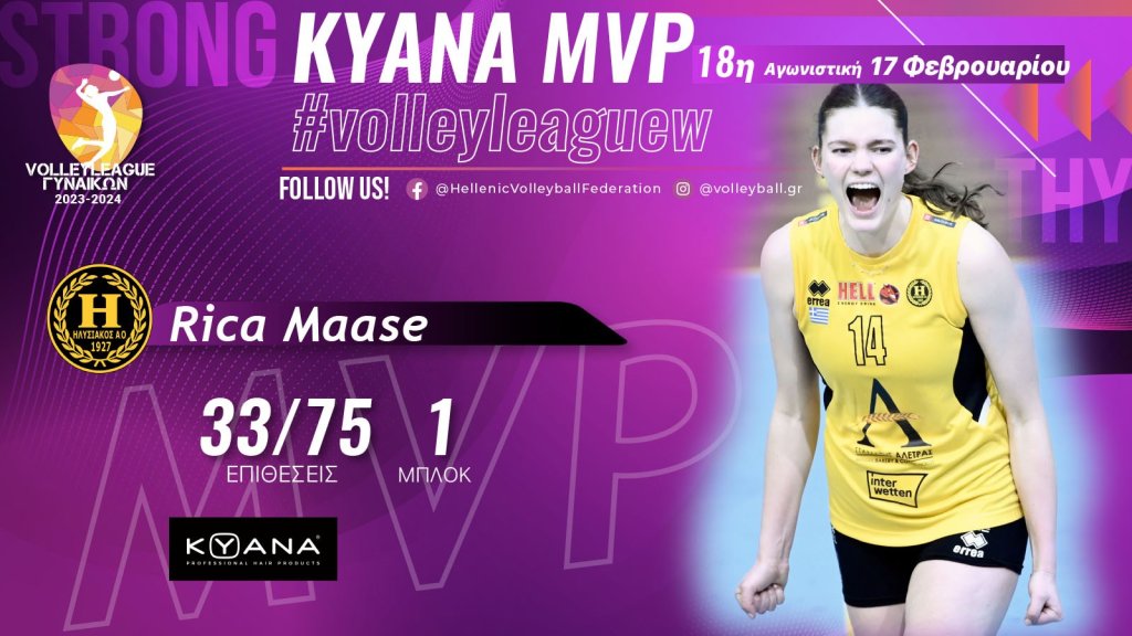 Η Ρίκα Μάασε πέτυχε 34 πόντους με 33/75 τελειωμένες επιθέσεις και 1 μπλοκ και ήταν καθοριστική στο κρίσιμο τάι μπρέικ για να πάρει ο Ηλυσιακός το δίποντο, βάζοντας τον για τα καλά στην διεκδίκηση μίας θέσης στα πλέι οφ και στην αποφυγή των πλέι άουτ.