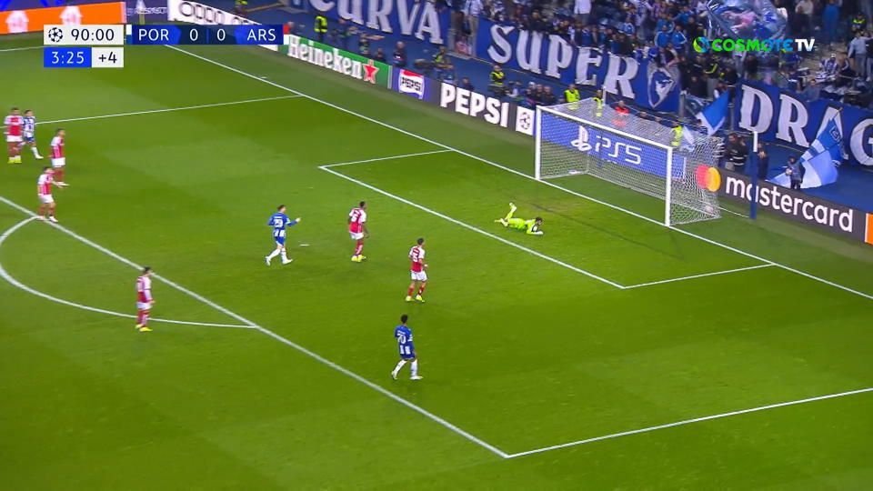 Στο 90+4' ο Γκαλένο με απίθανο φαλτσαριστό σουτ λίγο έξω από την περιοχή έγραψε το 1-0 για την Πόρτο κόντρα στην Άρσεναλ.