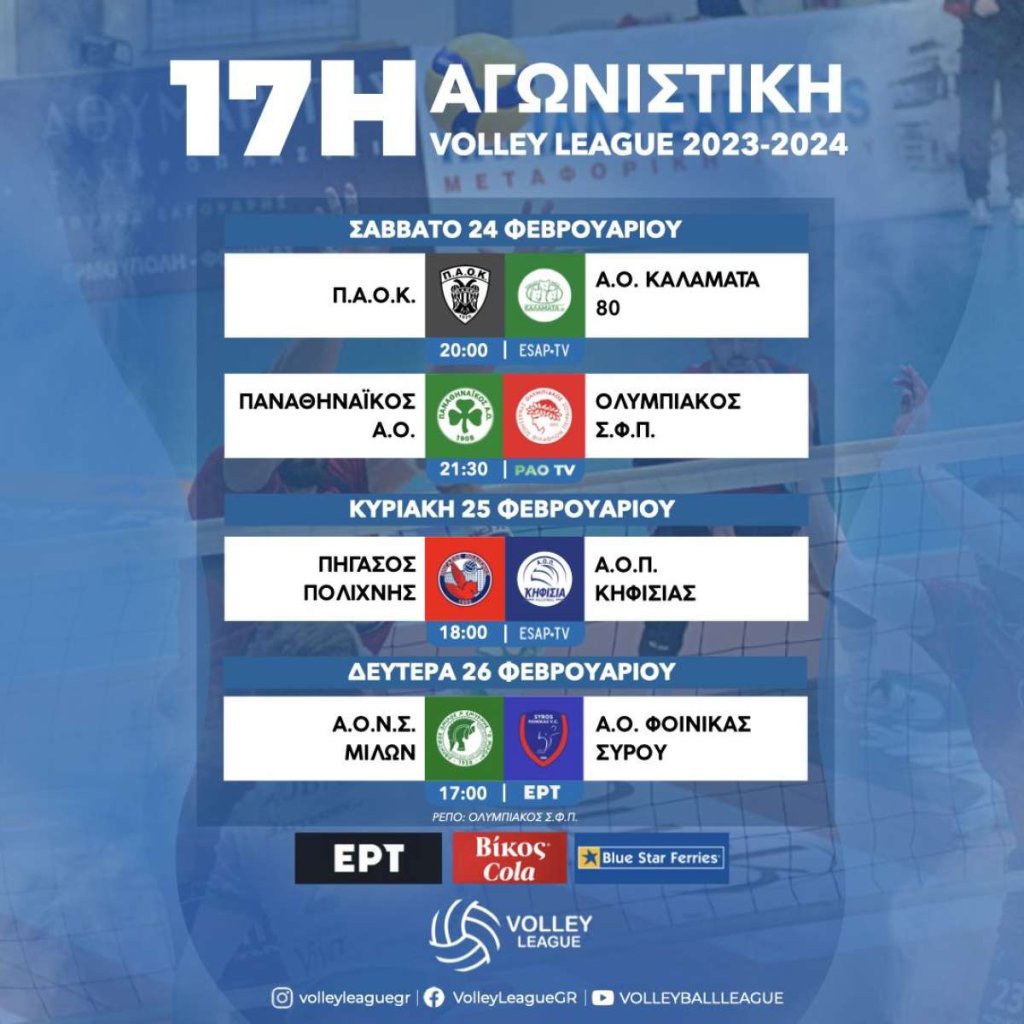 Αναλυτικά: «Volley League - 17η αγωνιστική