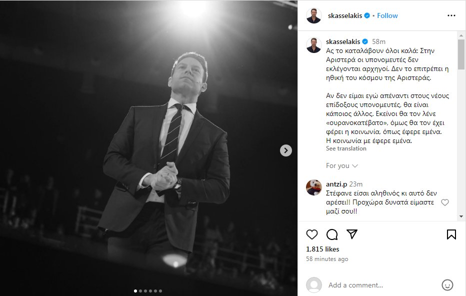 Λίγες ώρες πριν την ομιλία, ο Στέφανος Κασσελάκης περνά στην αντεπίθεση με ανάρτηση του στο Instagram.