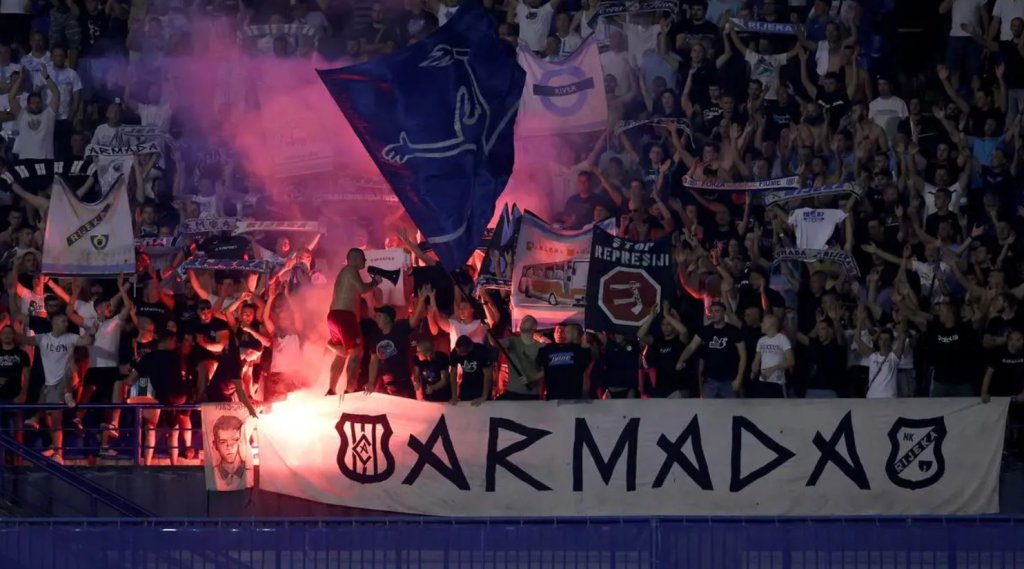 Η αστυνομία επενέβη και η «Armada», όπως είναι το όνομα των Ultras της Ριέκα, σταμάτησαν τα συνθήματα.