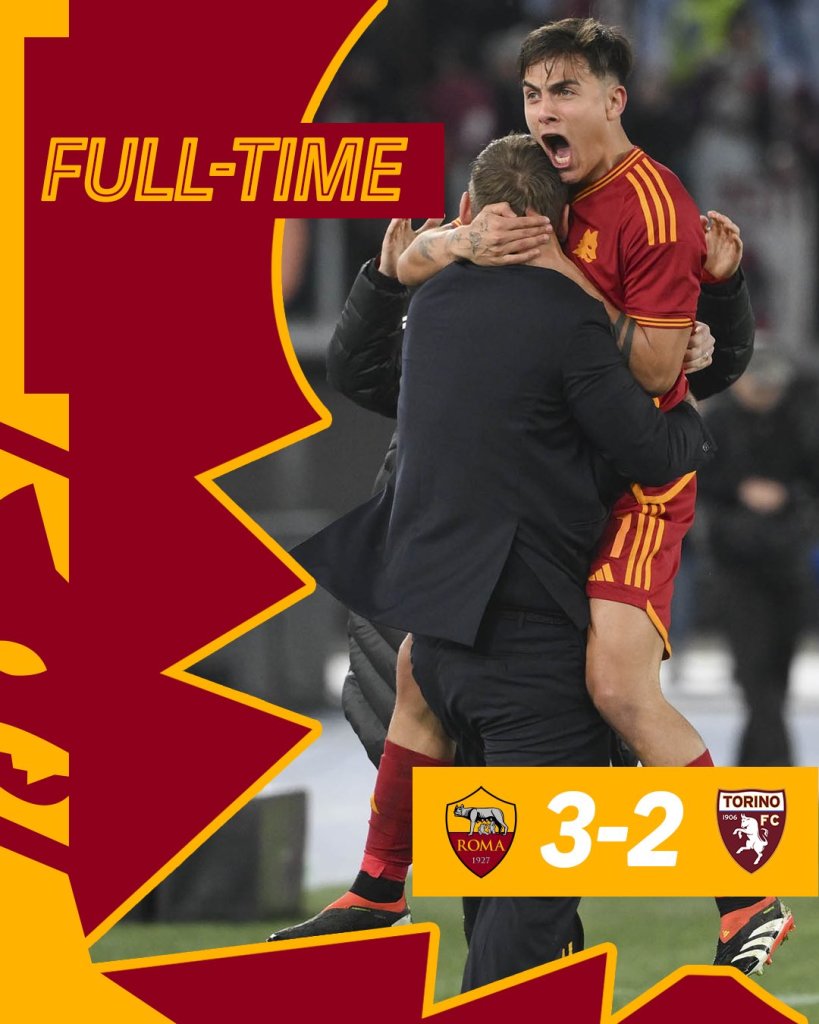 Η Ρόμα κέρδισε με 3-2 την Τορίνο κι έμεινε ζωντανή στη μάχη της τετράδας. Απόλυτος πρωταγωνιστής ο Πάολο Ντιμπάλα που πέτυχε χατ τρικ.