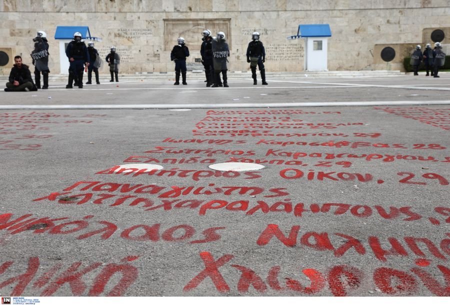 Στο Σύνταγμα εκτυλίχθηκαν συγκλονιστικές στιγμές στις εκδηλώσεις μνήμης για τα 57 άτομα που χάθηκαν στο σιδηροδρομικό δυστύχημα στα Τέμπη.