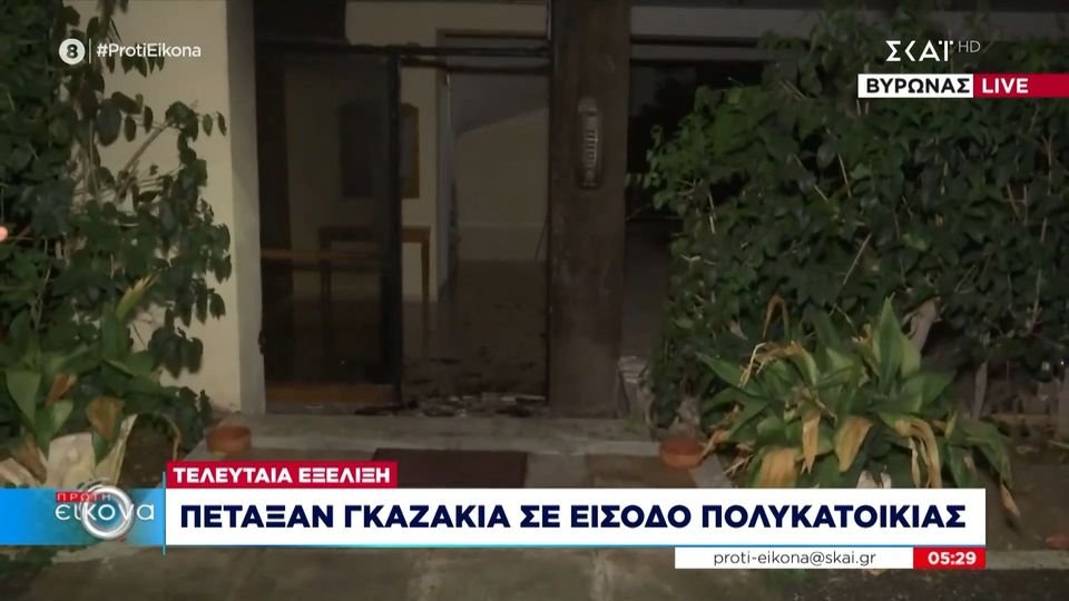 Όπως ανέφερε η ΕΡΤ όλα έγιναν στις 3.55 στον Βύρωνα. Άγνωστοι πέταξαν τρία γκαζάκια σε είσοδο πολυκατοικίας, η οποία βρίσκεται επί της οδού 3ης Σεπτεμβρίου 31.