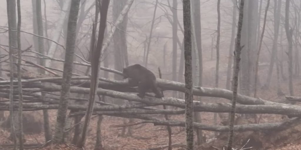 Στα πλάνα που δημοσίευσε ο Αρκτούρος βλέπουμε τον «Γιώργο» όπως φωνάζουν αυτήν την αρκούδα, να έχει σκαρφαλώσει στα κλαδιά ενός μεγάλου πεσμένου δέντρου και να τα εξερευνά.