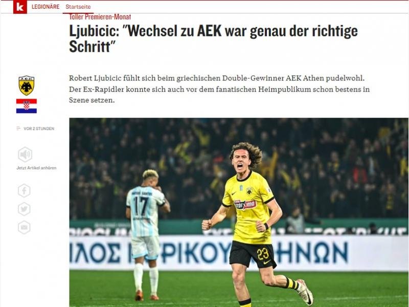 Με θερμά λόγια για όσα βιώνει στην ΑΕΚ αυτό το πρώτο διάστημα που είναι στην ομάδα μίλησε ο Ρόμπερ Λιούμπισιτς στο αυστριακό Kicker.