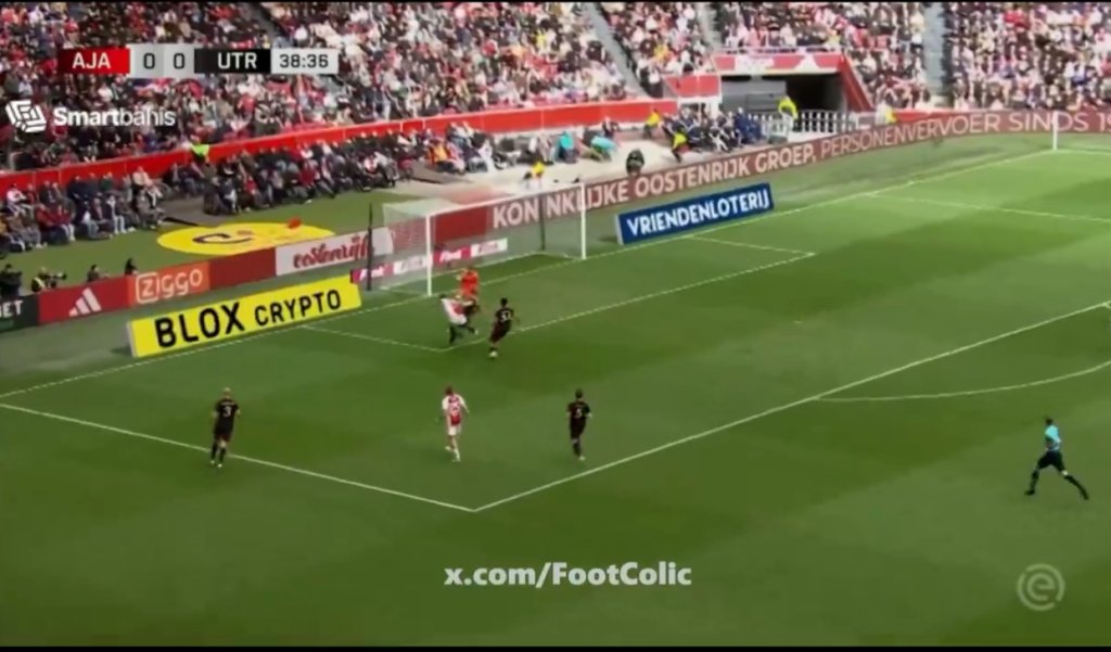Οι γηπεδούχοι παρατάχθηκαν με τριάδα στην άμυνα, αλλά, δημιουργικά, έκαναν ελάχιστα πράγματα, στη μεγαλύτερη διάρκεια του πρώτου μέρους. Ωστόσο, ούτε η Ουτρέχτη απειλούσε ιδιαίτερα, πέρα από ένα σουτ του Σαμ Λάμερς, στο 38ο λεπτό. Ωστόσο, ένα λεπτό αργότερα, ο Κάπλαν, με μακρινή μπαλιά, βρήκε τον Σόσα, εκείνος... έσκαψε την μπάλα για τον Μπρόμπεϊ και ο Ολλανδός στράικερ την πέρασε ανάμεσα από τα πόδια του γκολκίπερ της Ουτρέχτης για το 1-0 του Άγιαξ.
