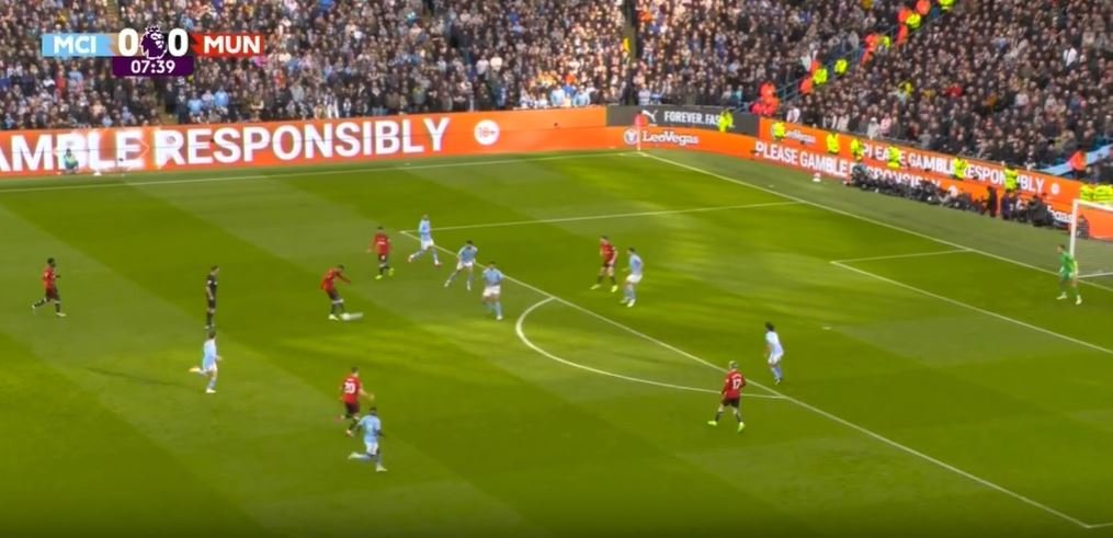 Με τους καλύτερους οιωνούς ξεκίνησε το ντέρμπι του Μάντσεστερ καθώς στο 8’ ο Ράσφορντ έπιασε ένα απίθανο σουτ έξω από την περιοχή κι έστειλε την μπάλα στο δοκάρι και στα δίχτυα του Έντερσον που έκανε ότι μπορούσε αλλά δεν κατάφερε να αποκρούσει.