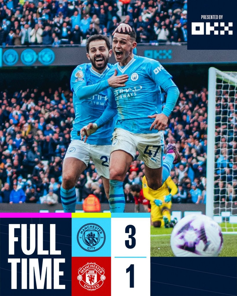 Ανατροπή τίτλου για τη Σίτι στο ντέρμπι του Μάντσεστερ. Οι «πολίτες» βρέθηκαν πίσω στο σκορ από τη Γιουνάιτεντ αλλά με πρωταγωνιστή τον Φιλ Φόντεν κέρδισαν με 3-1 και βρέθηκαν ξανά στο -1 από τη Λίβερπουλ, μια βδομάδα πριν από το μεταξύ τους ντέρμπι στο «Άνφιλντ».