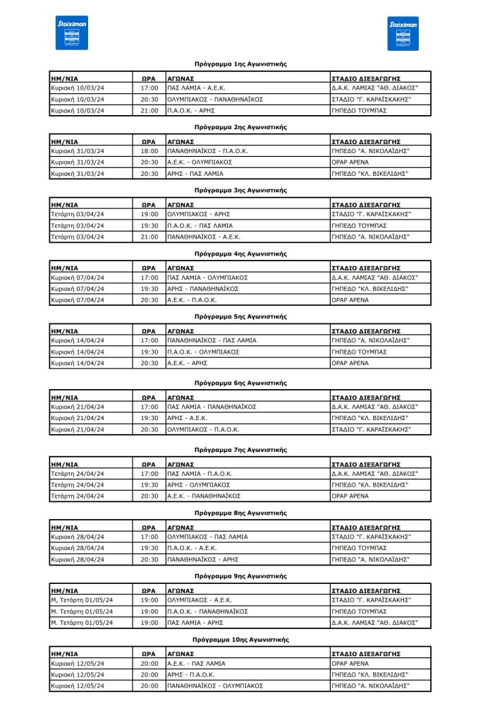 Στο σημερινό Διοικητικό Συμβούλιο της Super League οριστικοποιήθηκε το πρόγραμμα και οι ώρες των playoffs.