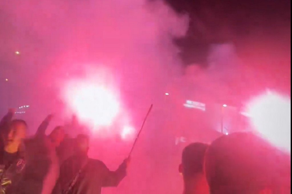 Παραμονή του αγώνα, οι Ισραηλινοί εκδρομείς βρέθηκαν στο Μοναστηράκι, άναψαν καπνογόνα και φώναζαν συνθήματα για την αγαπημένη τους ομάδα.