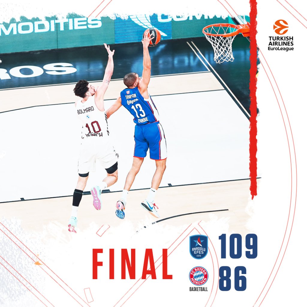 Με τον Σέιν Λάρκιν να πραγματοποιεί εντυπωσιακή εμφάνιση και να ολοκληρώνει το ματς με 28 πόντους, 4 ασίστ και 6/9 τρίποντα σε 26 λεπτά συμμετοχής η Εφές πήρε μια εντυπωσιακή νίκη κόντρα στην Μπάγερν με σκορ 109-86. Άξιος συμπαραστάτης ο Κλάιμπερν που είχε 21 πόντους.