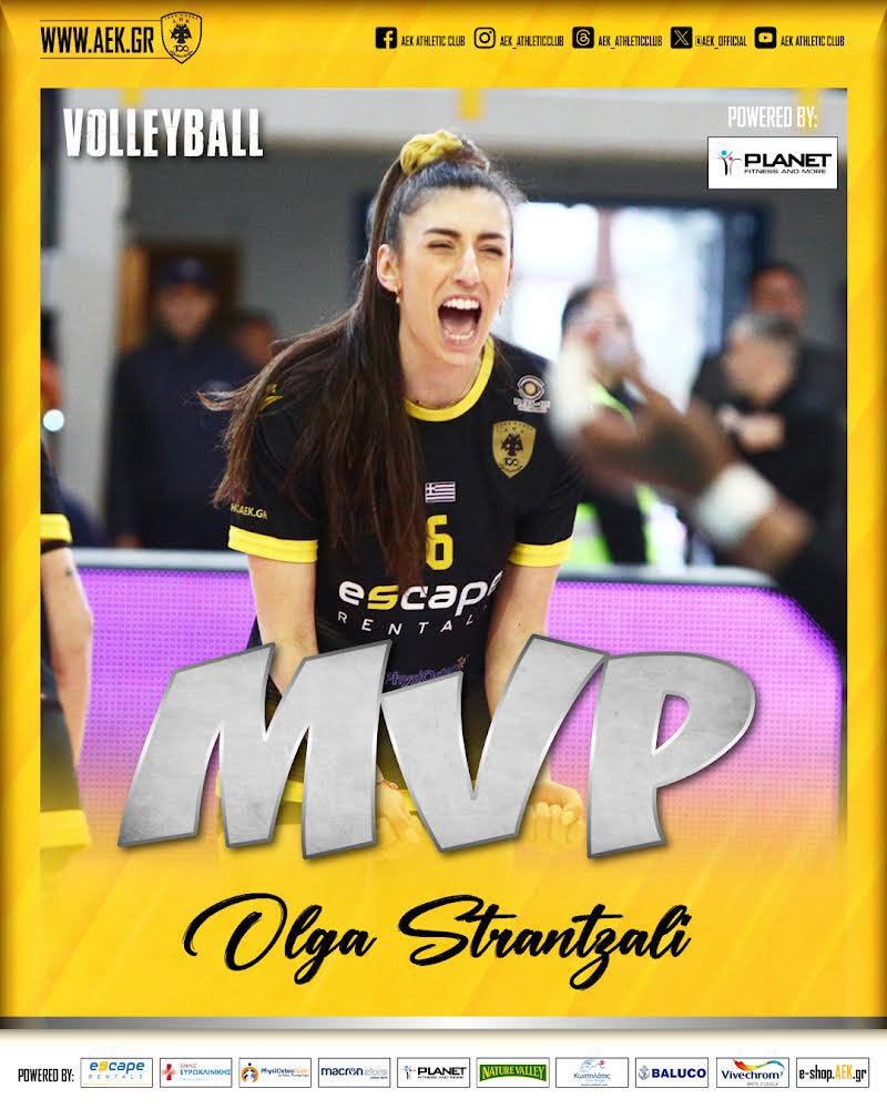 Η Όλγα Στράντζαλη ήταν από τις κορυφαίες στον πρώτο ημιτελικό του Φάιναλ Φορ του Κυπέλλου ανάμεσα στον Άρη και την ΑΕΚ, όπου η Ένωση επικράτησε με 0-3 σετ και πήρε το εισιτήριο για τον μεγάλο τελικό της Κυριακής. Η διεθνής ακραία της ΑΕΚ, μετά το τέλος του αγώνα με τον Άρη κέρδισε τον τίτλο «Planet Fitness and More» MVP.