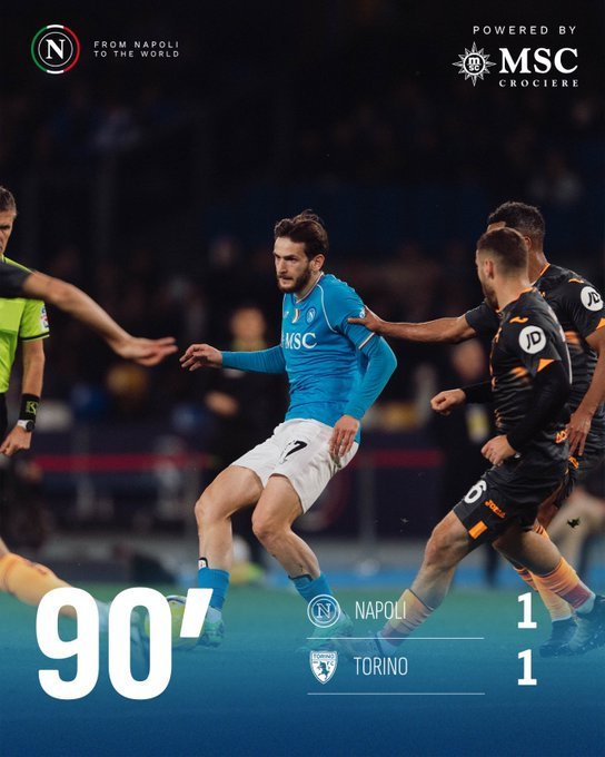 ΝΑΠΟΛΙ: Μερέτ, Ντι Λορέντζο, Όστιγκαρντ, Χουάν Ζεσούς, Μάριο Ρούι(79’ Ολιβέρα), Ανγκισά, Λομπότκα(90+2’ Λίντστρεμ), Ζιελίνσκι(67’ Τραορέ), Πολιτάνο(67’ Πολιτάνο), Κβαρατσχέλια, Οσιμέν