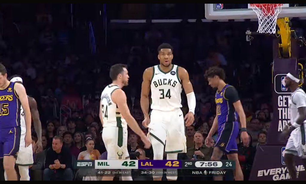 Το 43ο τριπλ-νταμπλ της καριέρας του κατέγραψε ο Γιάννης Αντετοκούνμπο, στην ήττα των Μιλγουόκι Μπακς από τους Λος Άντζελες Λέικερς.