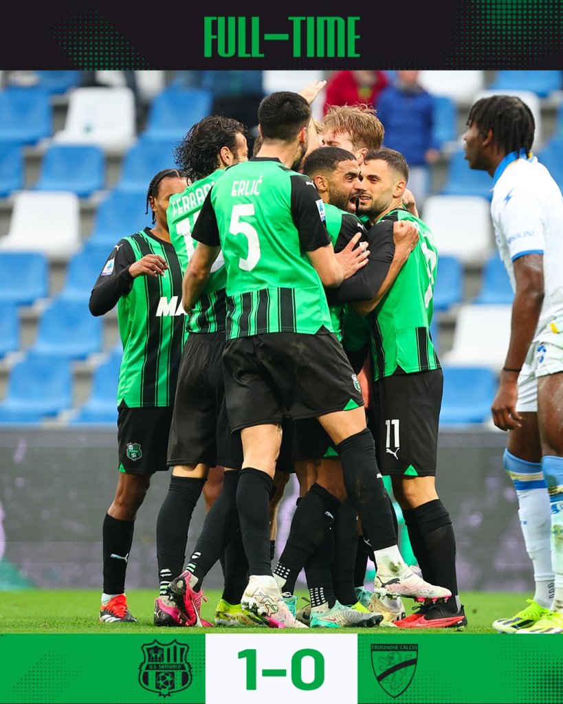 Επιτέλους νίκη για τη Σασουόλο, η οποία κέρδισε με 1-0 τη Φροζινόνε και την πλησίασε στον βαθμό στη μάχη της παραμονής.