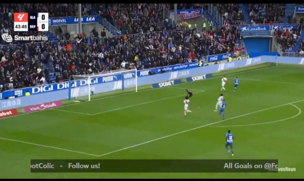 Σε ένα παιχνίδι με λίγες καλές στιγμές, η Ράγιο είχε την κατοχή, αλλά, αδυνατούσε να φανεί απειλητική. Στο 11', η Αλαβές είχε ευκαιρία με τον Γκουριντί και, τελικά, άνοιξαν το σκορ ένα λεπτό πριν από τα 45'. Στο 141ο παιχνίδι του, στη La Liga, ο μπακ Γκοροσάμπελ βρέθηκε σε θέση φορ, πέρασε την μπάλα πάνω από τον τερματοφύλακα της Ράγιο και, με το πρώτο γκολ της καριέρας του, έκανε το 1-0.