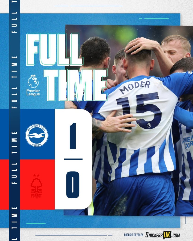 Η Μπράιτον κέρδισε με 1-0 τη Νότιγχαμ και παρέμεινε ζωντανή στη μάχη της Ευρώπης. Μόλις τρεις βαθμούς πάνω από τη ζώνη του υποβιβασμού η Φόρεστ και με ματς παραπάνω από τη Λούτον.