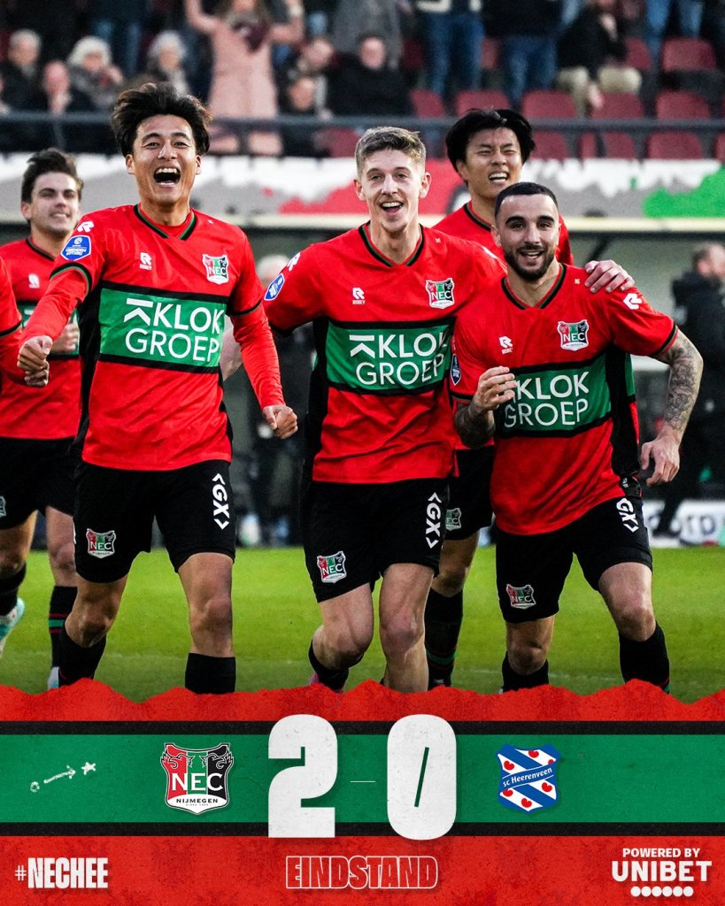 Νίκη ευρώπης για τη Ναϊμέγκεν η οποία κέρδισε με 2 γκολ σε δύο λεπτά την Χέρενφεεν (2-0) και πλησίασε τον Άγιαξ στην 5η θέση. Έχασαν έδαφος οι φιλοξενούμενοι αντίθετα στην δική τους μάχη για είσοδο στην πρώτη οχτάδα.