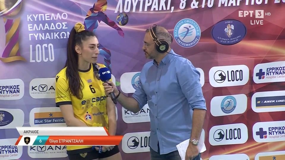 Η όλγα Στράντζαλη μετά το τέλος του αγώνα με τον Ολυμπιακό, όπου η ΑΕΚ γνώρισε την ήττα με 0-3 στον τελικό του Κυπέλλου του Φάιναλ Φορ στο Λουτράκι τόνισε πως μένει μια πικρία για τον χαμένο τίτλο. «Είμαι πολύ στεναχωρημένη γιατί ήμασταν πολύ κοντά και παλέψαμε σε όλα τα σετ. Η διαφορά ήταν 2 και 3 πόντοι και αυτό μας αφήνει πικρία και αυτό που μπορούμε να κάνουμε είναι να γίνουμε καλύτερες γιατί τα πλέι οφ πλησιάζουν».
