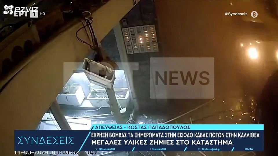 Μεγάλη έκρηξη σημειώθηκε λίγο μετά τις 03:00 τα ξημερώματα σε κάβα ποτών και αναψυκτικών στην οδό Αλεξάνδρου Πάντου στην Καλλιθέα. Η έκρηξη προκάλεσε σοβαρές υλικές ζημιές στην κάβα ποτών, σε διπλανό κατάστημα, ενώ έσπασαν και τα τζάμια εισόδου πολυκατοικίας από το ωστικό κύμα και οκτώ σταθμευμένα αυτοκίνητα υπέστησαν και αυτά ζημιές. Ένοικος της απέναντι πολυκατοικίας, περιγράφει στο ΕΡΤNews πως βίωσε το περιστατικό, αλλά και για τις τεράστιες ζημιές που υπέστη η επιχείρηση της συζύγου του που βρίσκεται δίπλα στην κάβα.