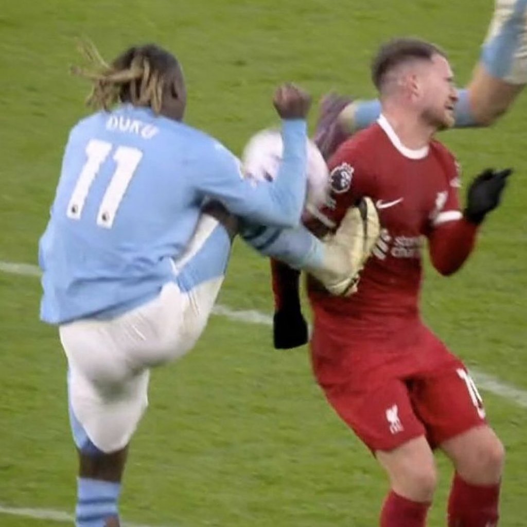 Ο Ζερεμί Ντοκού φάνηκε να βρίσκει με το πόδι στο στήθος τον Αλέξις Μακ Άλιστερ, ωστόσο ο διαιτητής Μάικλ Όλιβερ δεν έδειξε την άσπρη βούλα και η αρχική του απόφαση δεν ανατράπηκε αφού φάνηκε να συμφωνεί μαζί του και ο VAR.