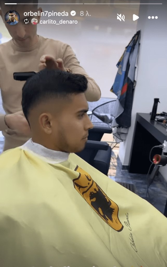 ΑΕΚ και στο… κουρείο για τον Ορμπελίν Πινέδα. Ο Μεξικανός πήγε να κουρευτεί και στο κουρείο του φόρεσαν μία μπέρτα που έφερε το σήμα της ΑΕΚ, αλλά και το όνομά του..