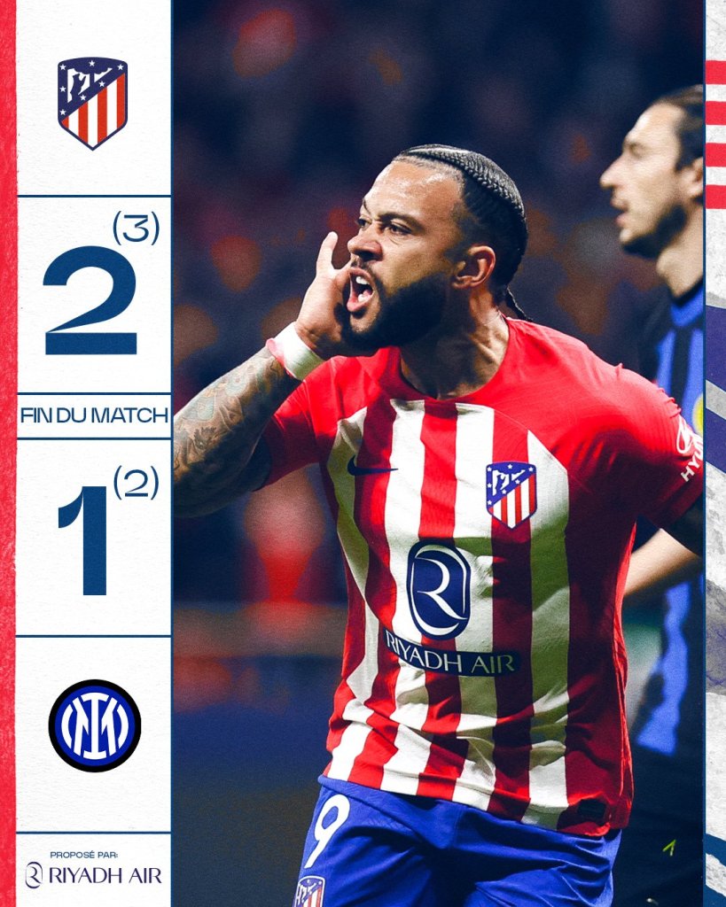 Στο 85’ το σουτ του Ντεπάι σταμάτησε στο δοκάρι του αλλά στο 86’ ο Κόκε πέρασε κάθετα στον Ολλανδό που γύρισε από το πέναλτι και με σουτ έκανε το 2-1. Η Ατλέτικο είχε την ευκαιρία να πάρει την πρόκριση στο 90+3’ καθώς ο Γκριεζμάν έκανε το γύρισμα από δεξιά αλλά ο Ρικέλμε σούταρε άστοχα από το πέναλτι.