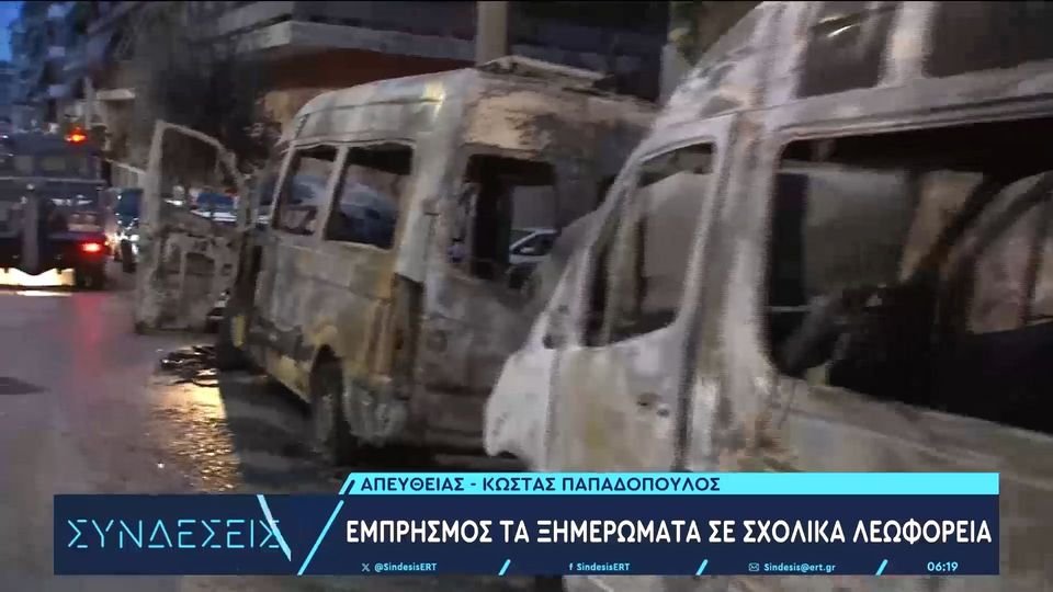Εμπρηστική επίθεση σημειώθηκε τα ξημερώματα στου Ζωγράφου. Στις φλόγες τυλίχθηκαν σχολικά λεωφορεία, ΙΧ αυτοκίνητα και μοτοσυκλέτες που ήταν σταθμευμένα επί της οδού Ταξίλου όταν άγνωστοι δράστες που βγήκαν από την Πανεπιστημιούπολη τα περιέλουσαν με εύφλεκτο υλικό.