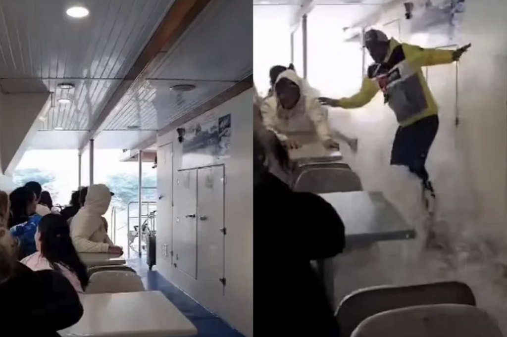 Το κύμα υψώθηκε τουλάχιστον μέχρι το πρώτο κατάστρωμα του πλοίου, όπως φαίνεται και σε βίντεο που τράβηξε κάποιος από τους επιβάτες με το κινητό του. Στα πλάνα διακρίνονται ορισμένοι εξ αυτών να παρακολουθούν πανικόβλητοι τα νερά να κατακλύζουν το φέρι μποτ κι άλλοι να σηκώνουν τα πόδια τους για να μη βραχούν.