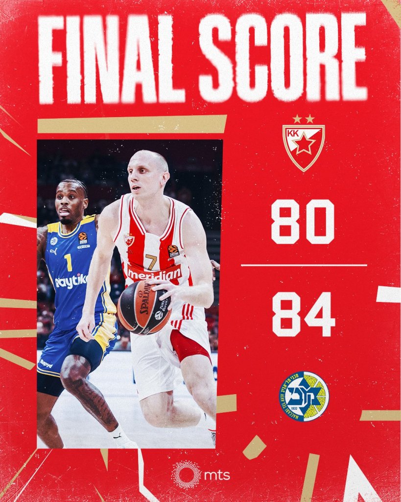 Μεγάλη ανατροπή και σπουδαία επικράτηση της Μακάμπι Τελ Αβίβ με 84-80 επί του Ερυθρού Αστέρα στη Stark Arena για την 29η αγωνιστική της EuroLeague. Η ομάδα του Κάτας ενώ βρέθηκε να χάνει ακόμα και με 14 πόντους, γύρισε το παιχνίδι στην τέταρτη περίοδο με οδηγό τον Νίμπο (18 πόντοι, 13 ριμπάουντ, 3 μπλοκ, 33 αξιολόγηση) και απέδρασε από το Βελιγράδι με ένα πολύ σημαντικό διπλο.