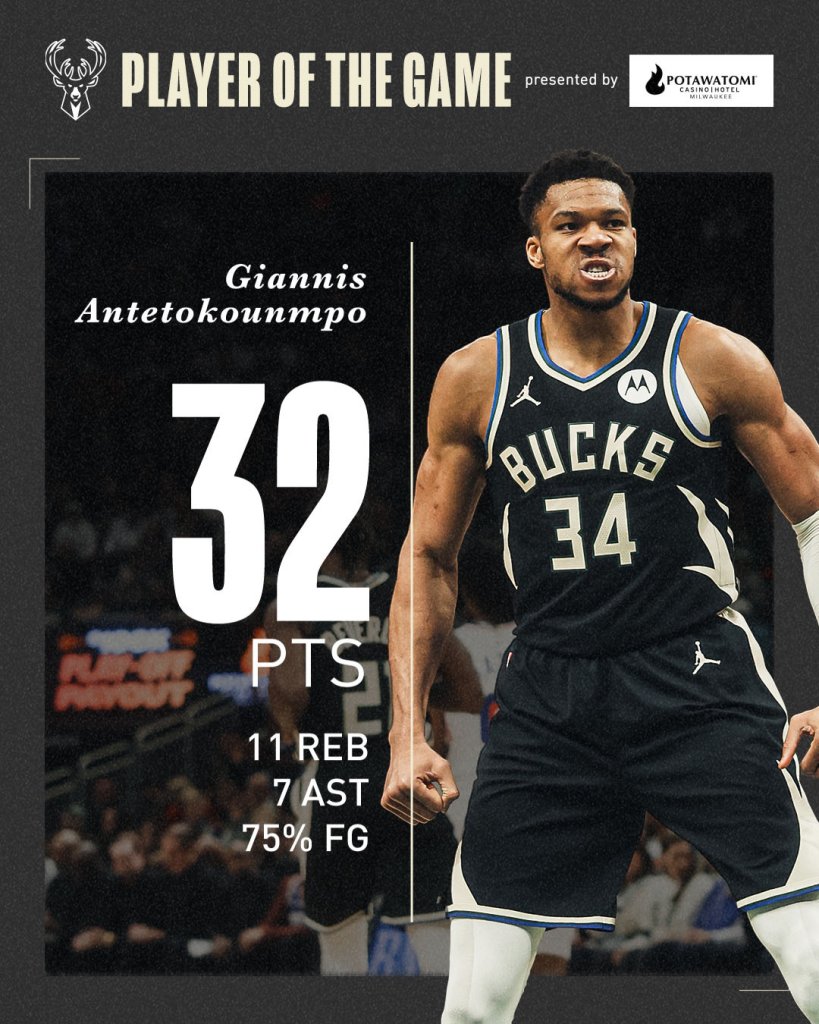 Οι Μπακς είχαν δύο ακόμα παίκτες με διψήφιο αριθμό στην επίθεση. Ο Μπρουκ Λόπεζ είχε 19 πόντους (2/2δ., 5/10τρ.), 7 αμυντικά ριμπάουντ, 5 ασίστ, 2 τάπες και 1 κλέψιμο, ενώ ο Ντέιμιαν Λίλαρντ προσέφερε 17 πόντους (1/1β., 5/9δ., 2/7τρ.), 9 ασίστ, 3 ριμπάουντ (2αμ.-1επ.), 1 κλέψιμο και 1 τάπα. Από τη μεριά των Σίξερς, πρώτος σκόρερ ήταν ο Ταϊρίς Μάξεϊ (30π., 1/3β., 7/14δ., 5/9τρ., 4ρ., 4ασ.), ενώ διψήφιοι στην επίθεση ήταν επίσης οι Τομπάιας Χάρις (15π., 3/4β., 3/7δ., 2/4τρ., 4ρ., 3ασ., 1κλ., 1τάπ.), Κάμερον Πέιν (13π., 2/3δ., 3/3τρ., 2ασ., 1ρ.) και Κάιλ Λάουρι (12π., 3/3β., 3/4δ., 1/3τρ., 2ρ.).