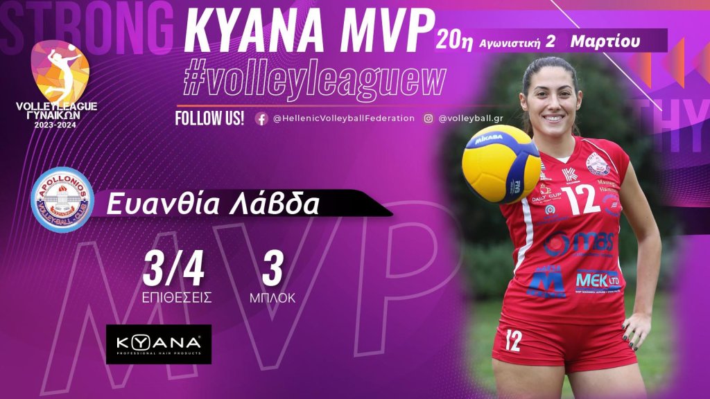 Η πασαδόρος των νεοφώτιστων στη Volley League Γυναικών ήταν η κορυφαία στην σπουδαία νίκη με 3-2 σετ στην έδρα του περσινού πρωταθλητή Παναθηναϊκού. Η Λάβδα εκτός των 6 πόντων που πέτυχε με 3/4 επιθέσεις και 3 μπλοκ οργάνωσε άψογα το παιχνίδι της ομάδα της στην επίθεση με 36% αποτελεσματικότητα, έχοντας να διαχειριστεί 18% άριστες υποδοχές.