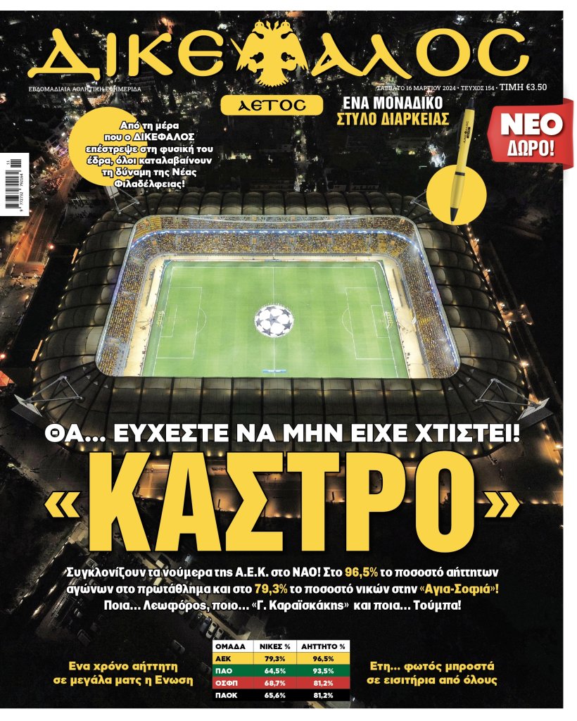 Διαβάστε επίσης: Αποκλειστικά ρεπορτάζ, θέματα και αναλύσεις, αρθρογραφία από τους καλύτερους ρεπόρτερ της Α.Ε.Κ., πλούσια παρασκήνια και μάθετε τα πάντα, για όλα τα αθλήματα του «κιτρινόμαυρου» πλανήτη.
