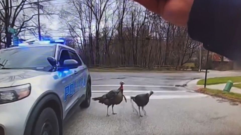 Οι τρομοκράτες, δυο ...γαλοπούλες που προστάτευαν την περιοχή τους κατάφεραν όχι μόνο να απομακρύνουν τους αστυνομικούς αλλά και να τους αρχίσουν στα τσιμπήματα με τα ράμφη τους...