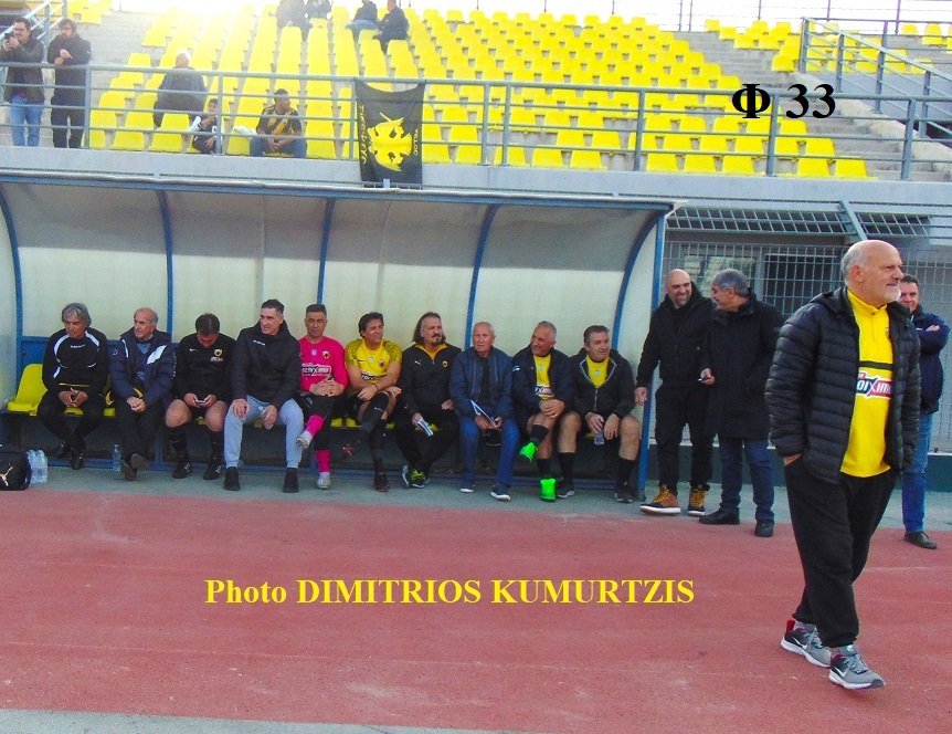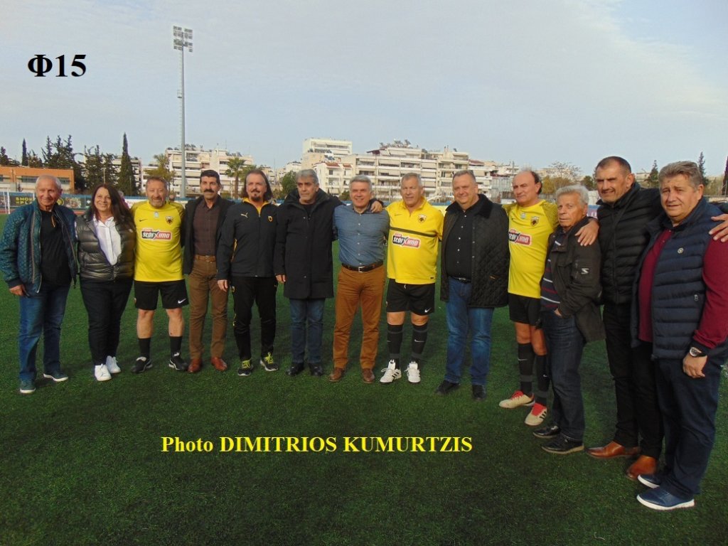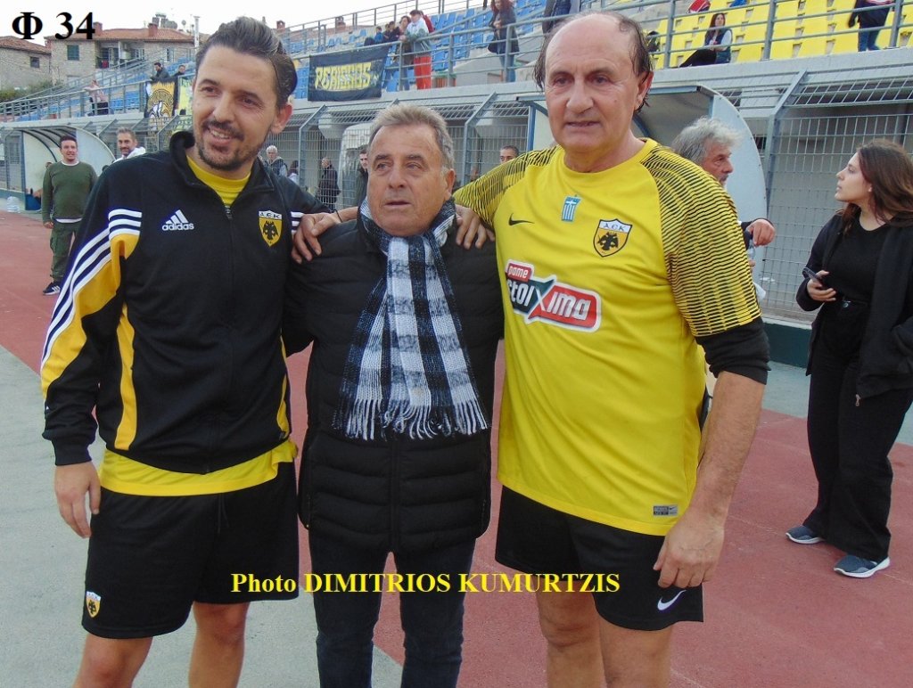 ΒΕΤΕΡΑΝΟΙ ΑΕΚ(Εκλέκτορας Δημήτρης(Τάκης). Καραγκιοζόπουλος): Χριστόφορος Βερβερής, Παναγιώτης Στυλιανόπουλος, Χρήστος Λουκίνας, Μιχάλης Καρούσης, Λύσσανδρος Γεωργαμλής Ηλίας Κυριακίδης, Μάρκος Μυλωνάς, Ιβάν Ρούσεφ, Χρήστος Παρθένης, Ντανιέλ Μπατίστα, Λάμπρος Γεωργιάδης (αρχική), Διονύσης Χιώτης, Χάρης Κοπιτσης, Ιωάννης Κοντοές, Παναγιώτης Παπαθεοδώρου, Ι. Ζωγράφος, Στέφανος Πορφύρης, Τριαντάφυλλος Παντελίδης. Με την αποστολή, παρόντες και ο πρόεδρος του Συνδέσμου και από τις ιστορικότερες εν ζωη φυσιογνωμίες της 78χρονος Γιώργος Καραφέσκος, Στην καριέρα του στην ΑΕΚ, ο «μπέμπης» όπως ήταν το ψευδώνυμό του, για τι έκανε ντεμπούτο 17ετων στην πρωτη ομάδα συμπλήρωσε 230 συμμετοχές με 28 γκολ και κατέκτησε δύο Πρωταθλήματα (1967-68, 1970-71) και ένα Κύπελλο Ελλάδας (1965-66), ενώ ήταν μέλος της ομάδας που έπαιξε Προημιτελικό Κυπέλλου Πρωταθλητριών το 1969.Ο 80χρονος Κώστας Νικολαϊδης, που ξεκίνησε τη καριέρα του από τον ΠΑΟΣαφράμπολης Νέας Ιωνίας και ένοιωθε σαν στο σπίτι του αφού βρήκε πολλούς γνώριμους. Με την φανέλα της ΑΕΚ συμπλήρωσε 248 συμμετοχές στο Πρωτάθλημα, πετυχαίνοντας 94 γκολ που τον κατατάσσουν στην 6η θέση των σκόρερ της Ένωσης. Κατέκτησε με την ΑΕΚ δυο Πρωταθλήματα (1967-68, 1970-71) και εναΚύπελλο Ελλάδας (1965-66).