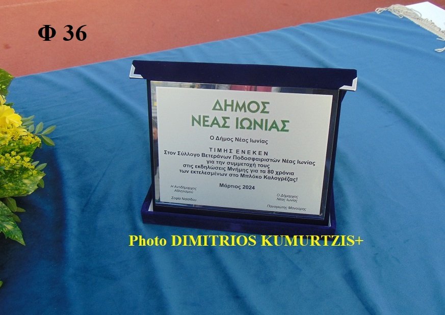 Φ36 Η πλακέτα, που αθλοθέτησαν οι διοργανωτές της αντιδημαρχίας αθλητισμού Νέας Ιωνίας για την ΑΕΚ