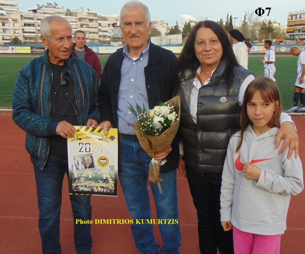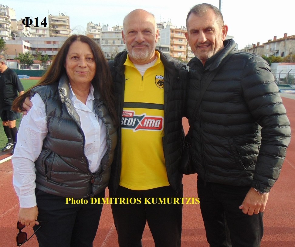 Φ14 Ο εκλέκτορας των βετεράνων της ΑΕΚ Δημήτρης(Τάκης). Καραγκιοζόπουλος εν μέσω της αντιδημάρχου αθλητισμού Νέας Ιωνίας Σοφίας Ναϊσίδου και του αντιδημάρχου βρεφονηπιακών και παιδικών σταθμών Σωτήρη Σκευοφύλακα,