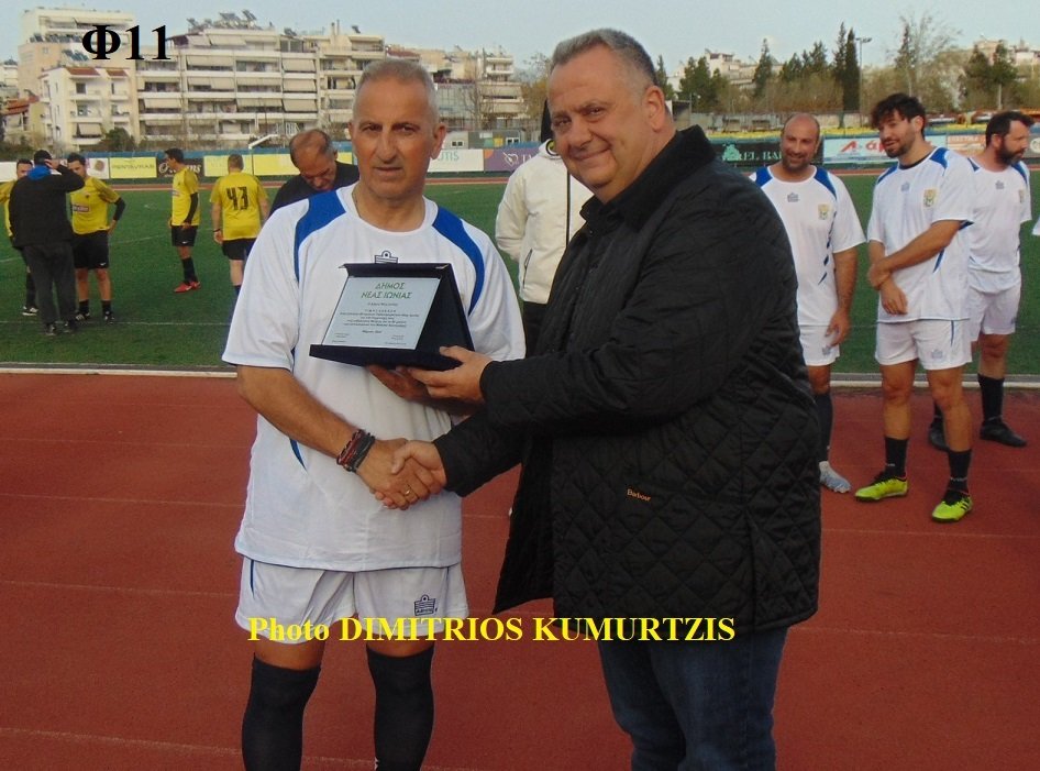 Φ11 Ο Δήμαρχος Νεας Φιλαδέλφεια Ιωάννης Τομπούλογλκου, απένειμε τιμητική πλακέτα στον αρχηγό των γηπεδούχων Κώστα Ελευθεριάδη
